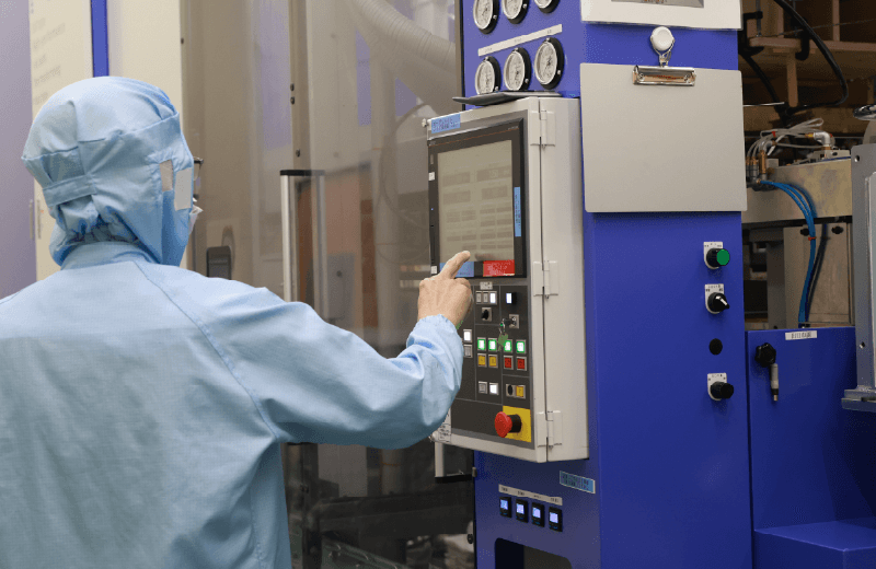 - 真空成型→プレス→検査→包装の工程をクリーン棟内で可能。